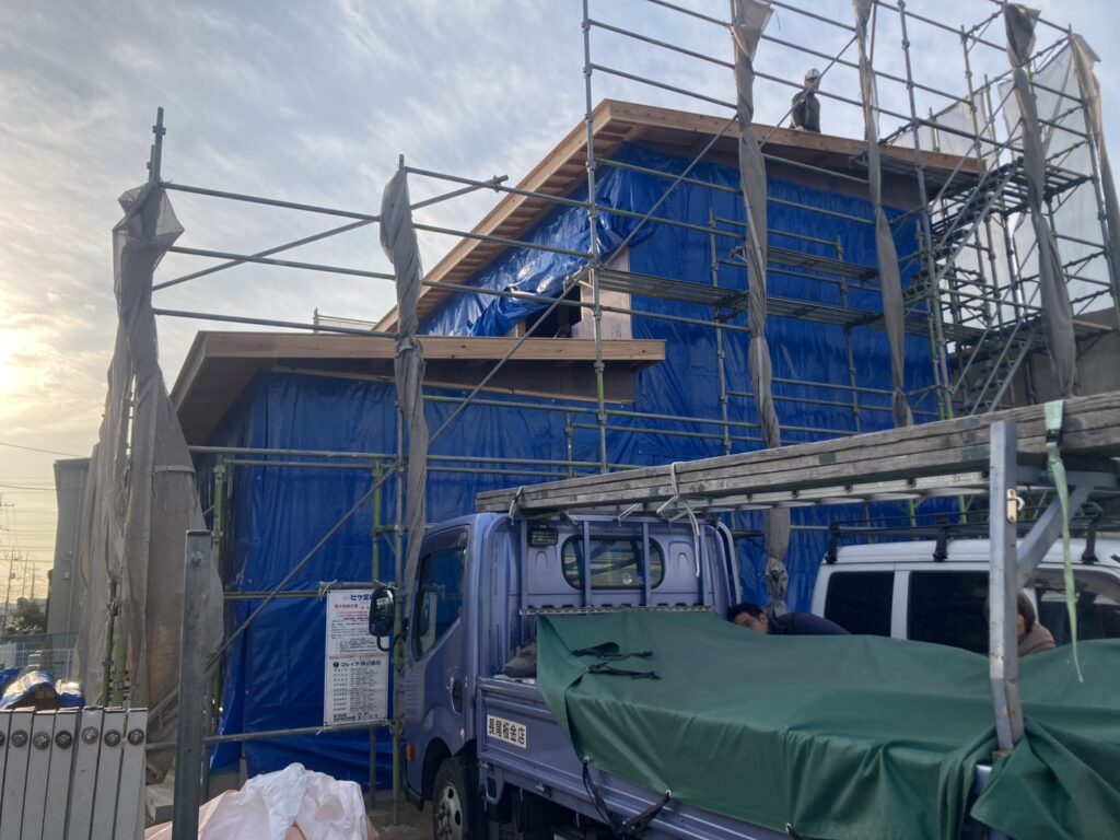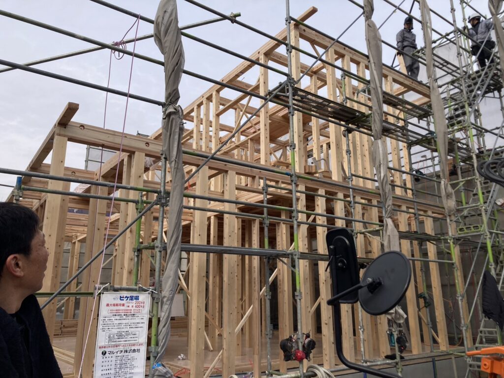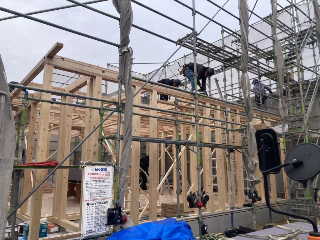 上棟時はかなり冷え込んだ中での工事となりました。