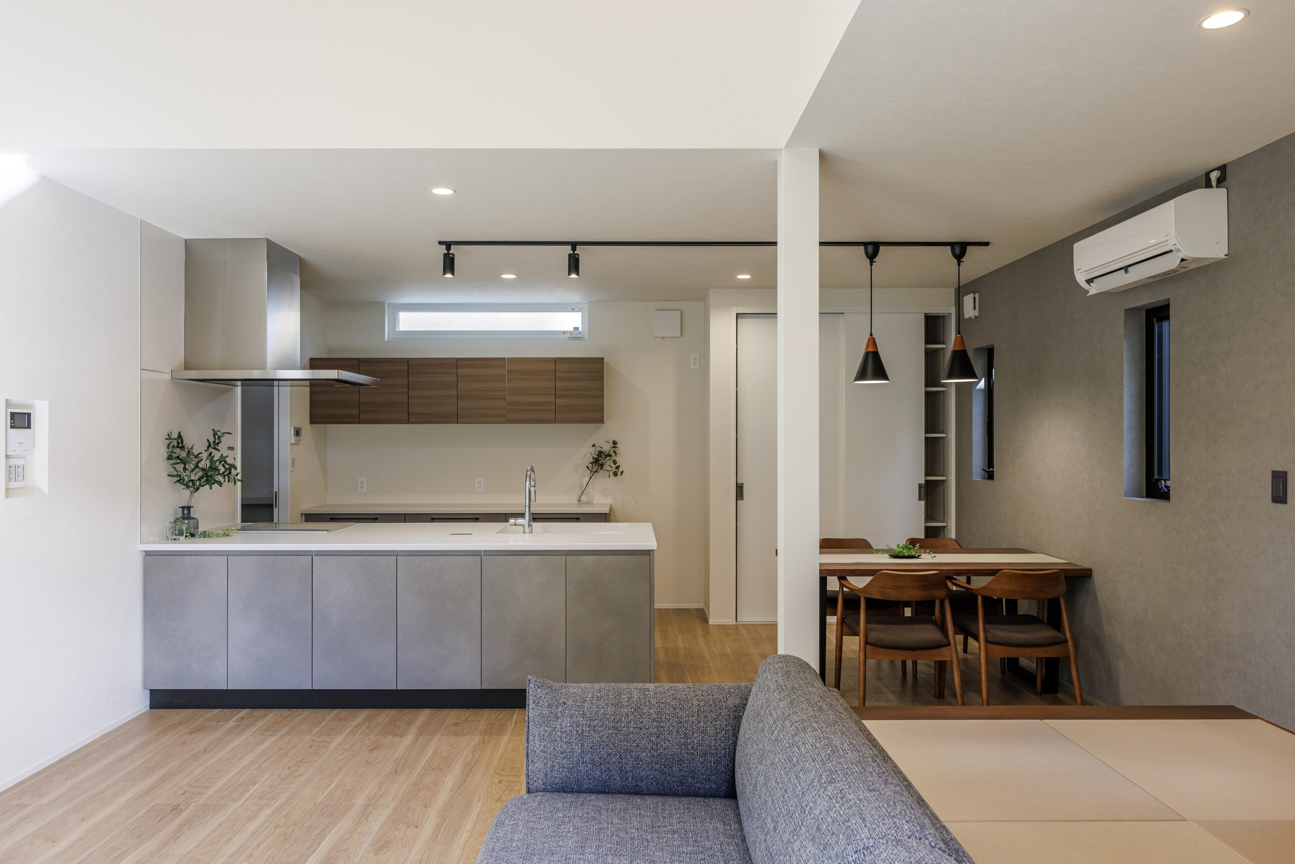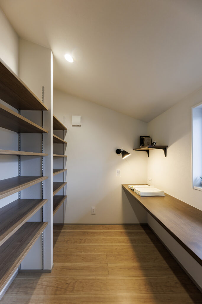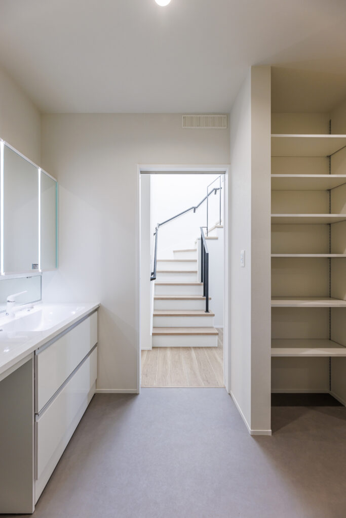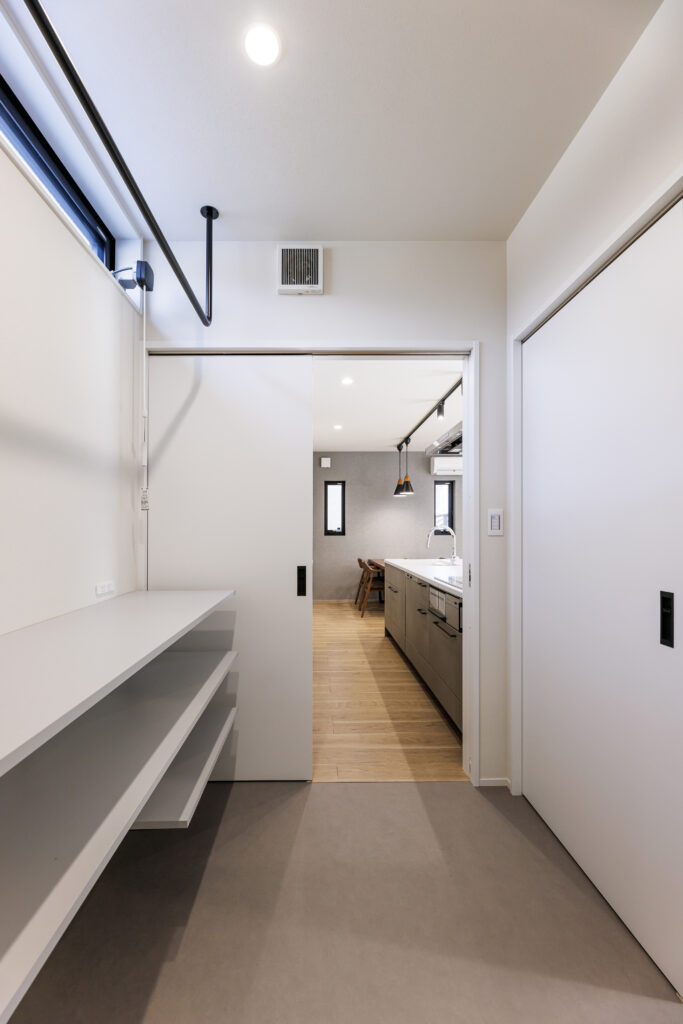Ua値0.41 C値0.2の高性能を生かして、また帰宅動線・家事動線を引戸でつないで使いやすく、そしてワンフロアにも使えて温度差の少ない家事動線などなど、Soraieの目指す家づくりを詰め込んだ建物。